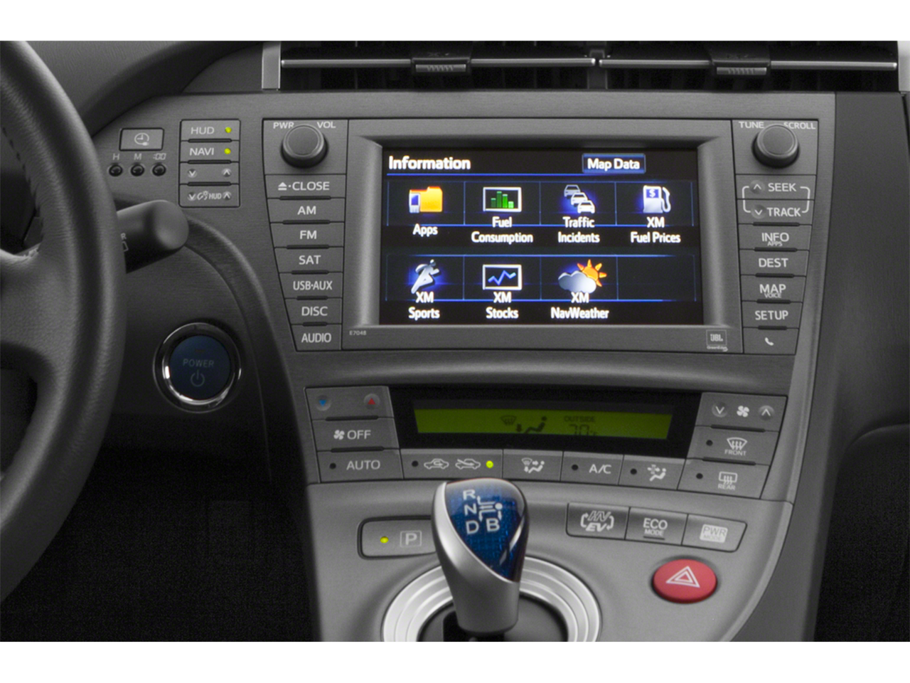 - Radio: AM/FM/CD Player w/Premium HDD Navigation -inc: display audio, 7" high-resolution touchscreen w/split-screen capability, 8 JBL GreenEdge speakers, SiriusXM Radio w/90-day All Access trial, HD Radio, auxiliary audio jack, USB port, vehicle information, hands-free phone capability, advanced voice recognition, and music streaming via Bluetooth® wireless technology, Entune App Suite includes Bing, iHeartRadio, MovieTickets.com, OpenTable and Pandora; SXM Data Services including NavTraffic, NavWeather, Fuel, and Sports & Stocks; Entune Plug-in Hybrid Applications include Charge Management, Remote Climate, Vehicle Finder, Charging Station Map and ECO Dashboard Access to SXM Data Services (Stocks/Sports/Fuel Prices/Weather/Traffic) and Plug-in Hybrid Applications is complimentary for three years. Access to all other Entune App Suite services is subscription-free. Users will have the ability to opt-in to various levels of services. See toyota.com/entune for details.