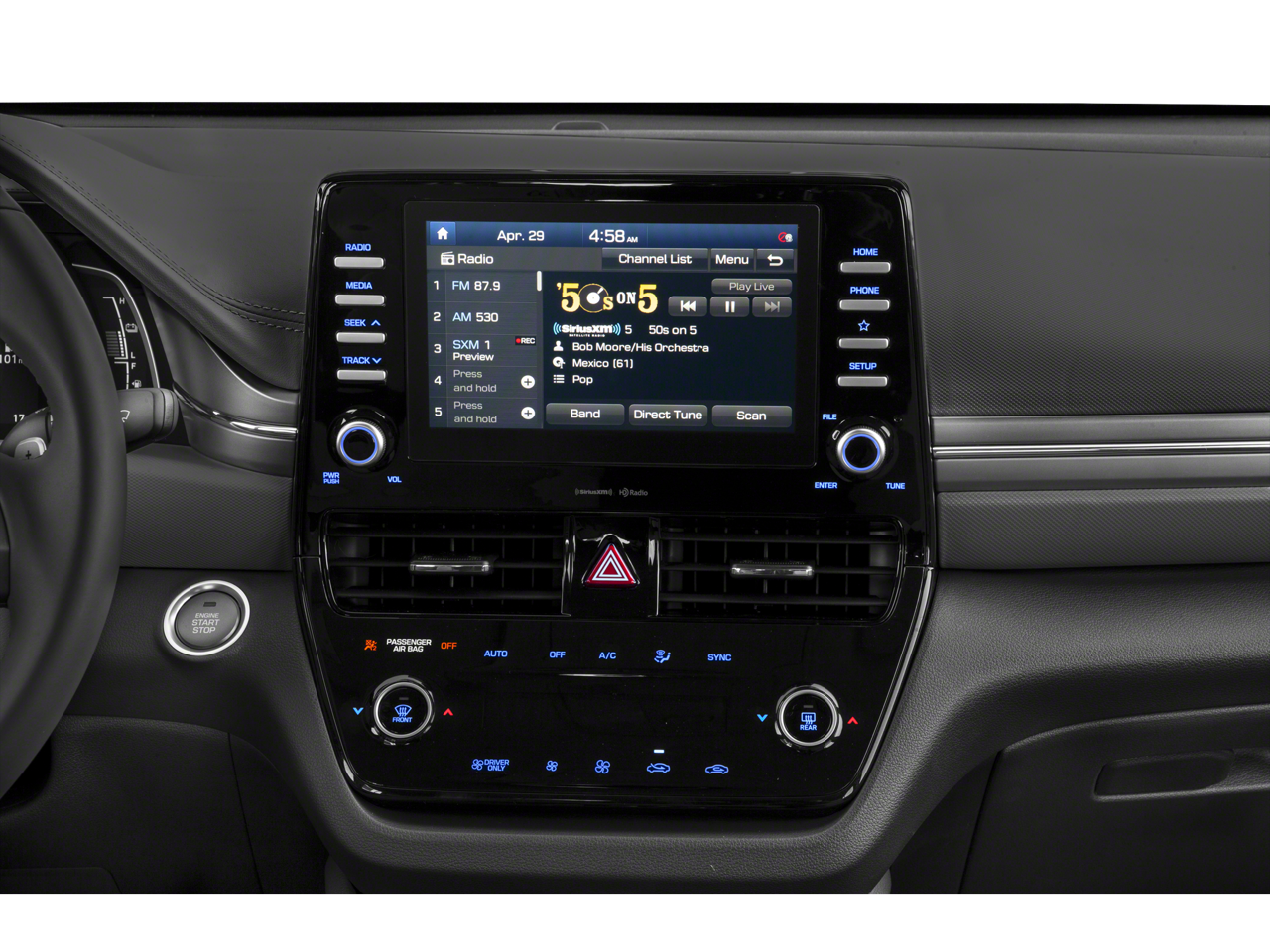 - Radio: AM/FM Display Audio -inc: 8" high resolution color touchscreen display, rearview camera w/dynamic guidance, hybrid technology display, USB input jacks, Android Auto and Apple CarPlay integration for compatible smartphones, integrated Bluetooth® hands-free phone system w/phonebook transfer, SiriusXM satellite radio w/90-day trial (not available in AK and HI), HD Radio technology, USB charge port in center console, Blue Link connected car services and Blue Link connected care and remote package (for 3-years, enrollment required)